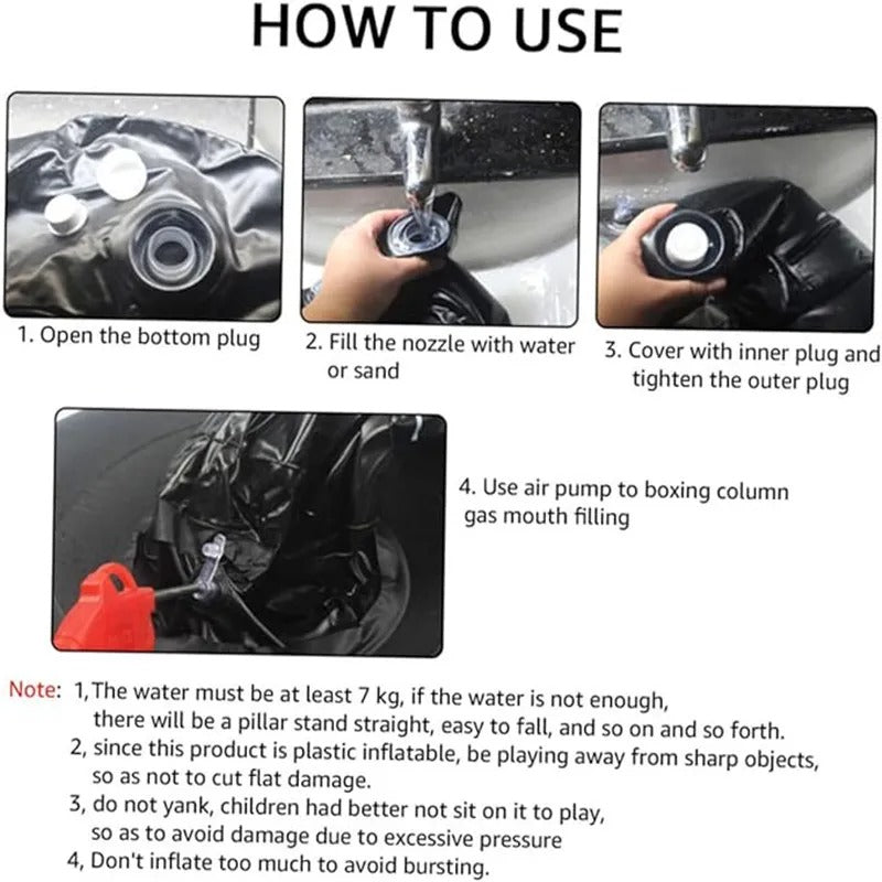 Upgraded Adult Free standing Punch Bag: Compare with the traditional heavy bag, inflatable adult punching bag can be disassembled and folded when not in use, easier to move. The karate punching bag for teens can be used in the living room, bedroom, office and any flat ground.
